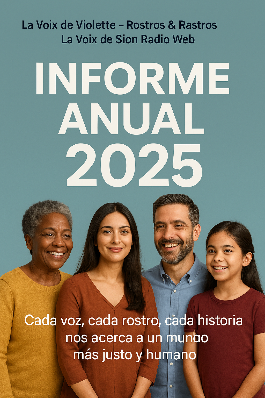 L’année 2025 a été un temps de consolidation et d’expansion. Notre association, avec la revue Rostros & Rastros et la radio web La Voix de Sion, s’est affirmée comme un espace de référence international pour la promotion de la dignité humaine, de l’égalité de genre et de la prévention de la violence. Ce rapport s’adresse au public mondial qui nous accompagne, en présentant réalisations, apprentissages et projections qui inspirent confiance et espoir.
